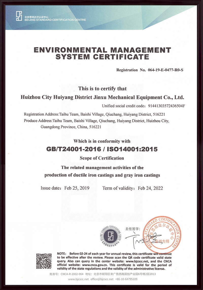 惠州市惠陽區金旭機械設備有限公司(原名深圳金泉鑄造廠),始建于1992年2月,公司坐落于惠州市惠陽區秋長白石大湖工業區,是一家集模型、鑄造、機械加工于一體的綜合型企業,主要生產高強度高韌性球墨鑄鐵、灰鑄鐵及鑄銅、鑄鋁等各種材質及牌號鑄件。